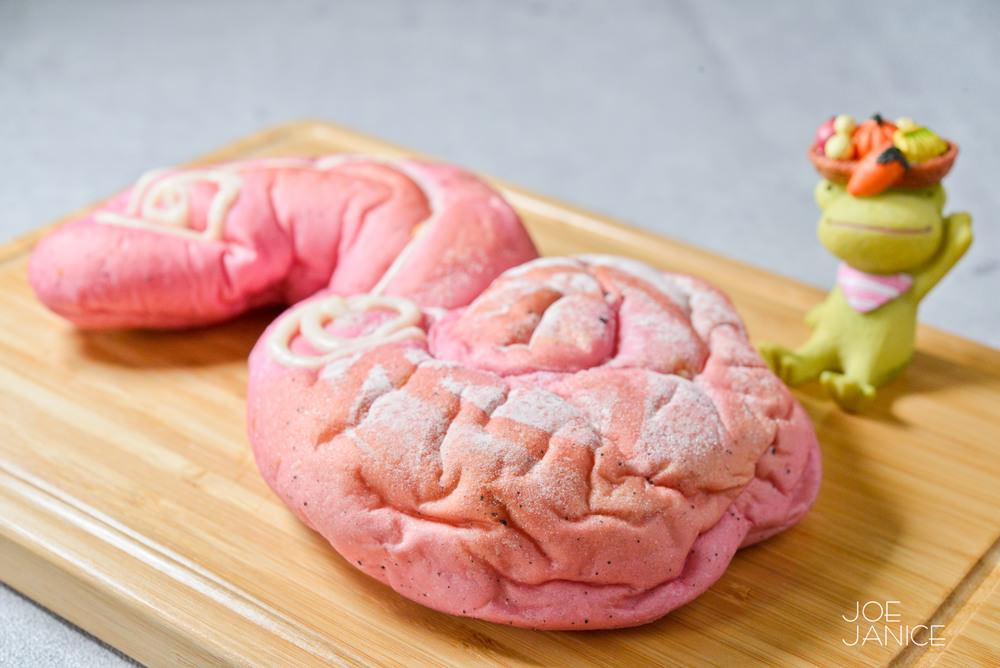 使用了產季中的紅龍果,粉紅色的萌萌外表,裡頭包著甜甜奶餡,鬆軟的口感帶著水果清爽的香。