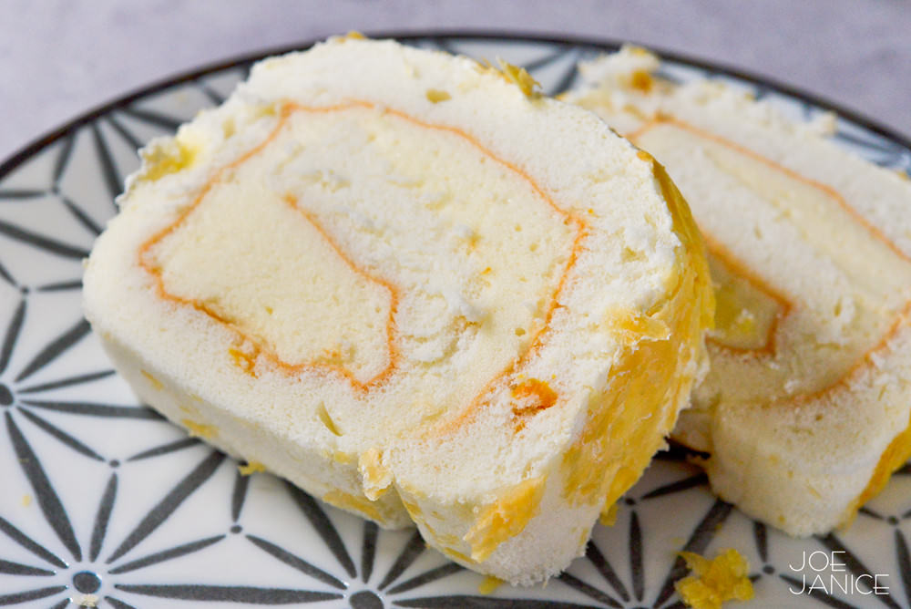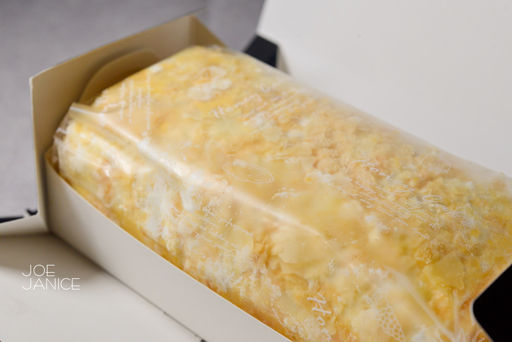 使用了台灣在地的芒果乾、棉花糖和蛋糕捲,蛋糕捲本身口感好軟綿柔滑,中間有著QQ彈性口感的竟然是棉花糖,好特別啊!而且老師已經改良成第2版本,經過減糖處理,整體吃起來不會太甜膩,且芒果乾的微酸帶來了清爽感,非常討喜,完全可以明白為什麼如此熱賣啊。